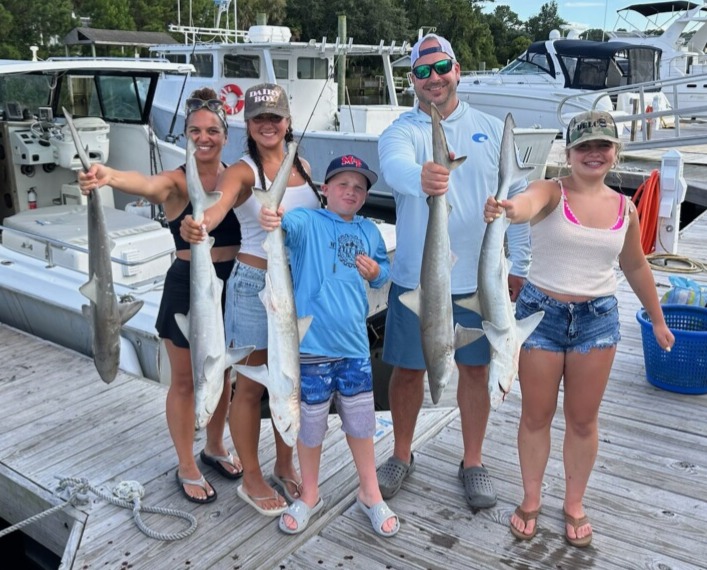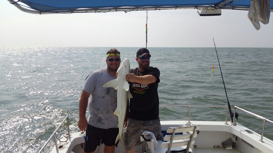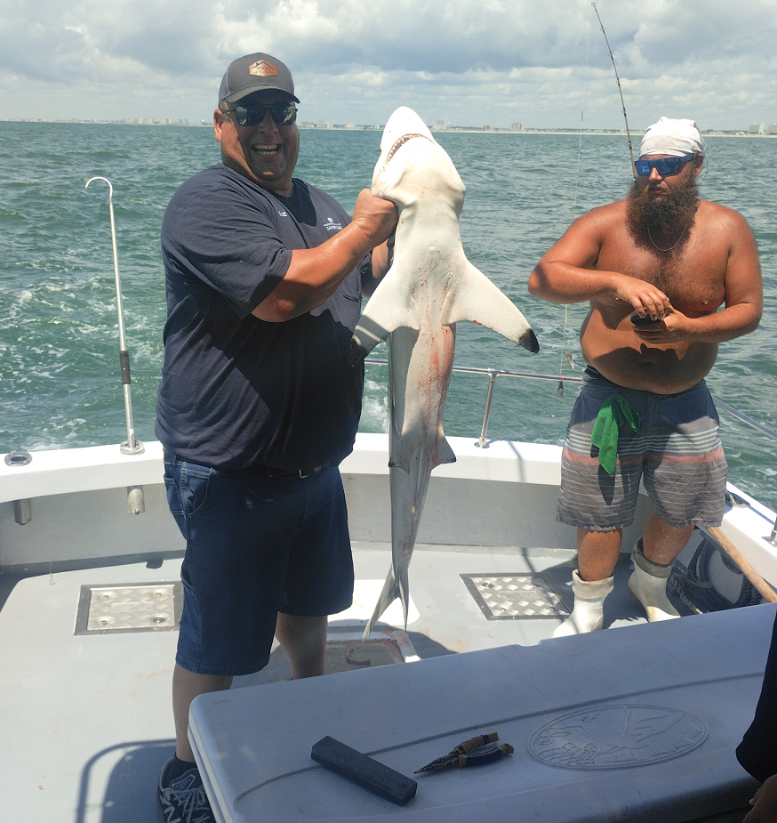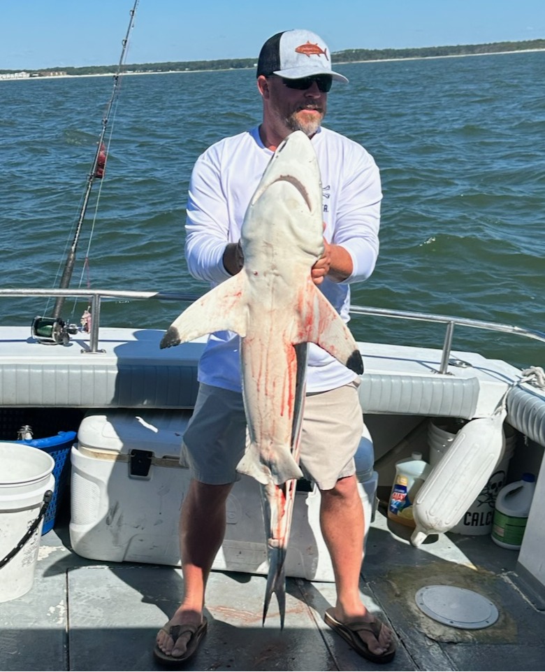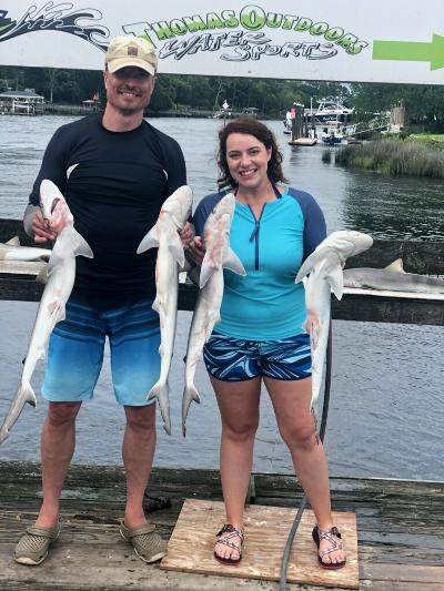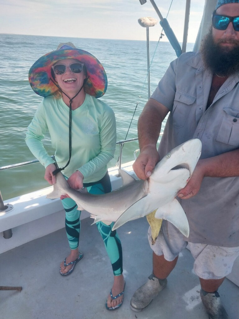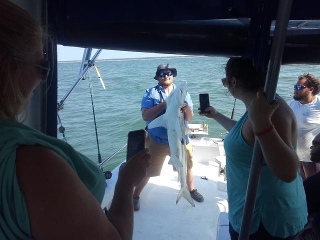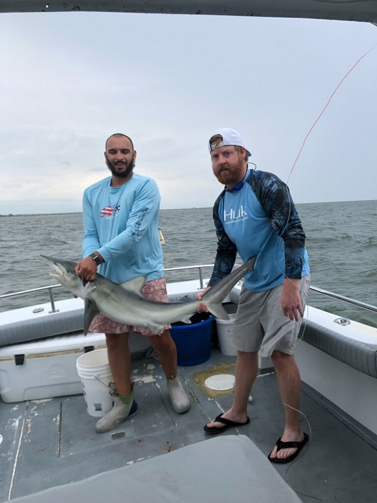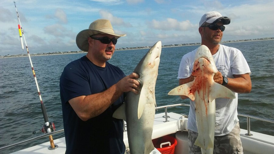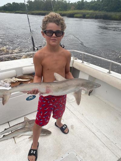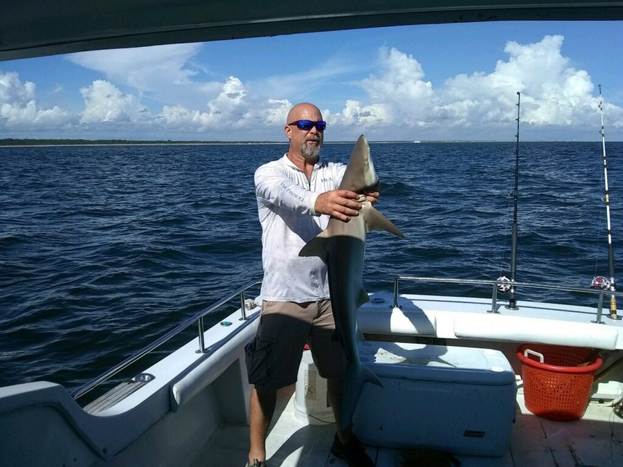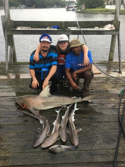 Sharks are showing up thick now with good catches on fish hook 2 with Capt Brandon