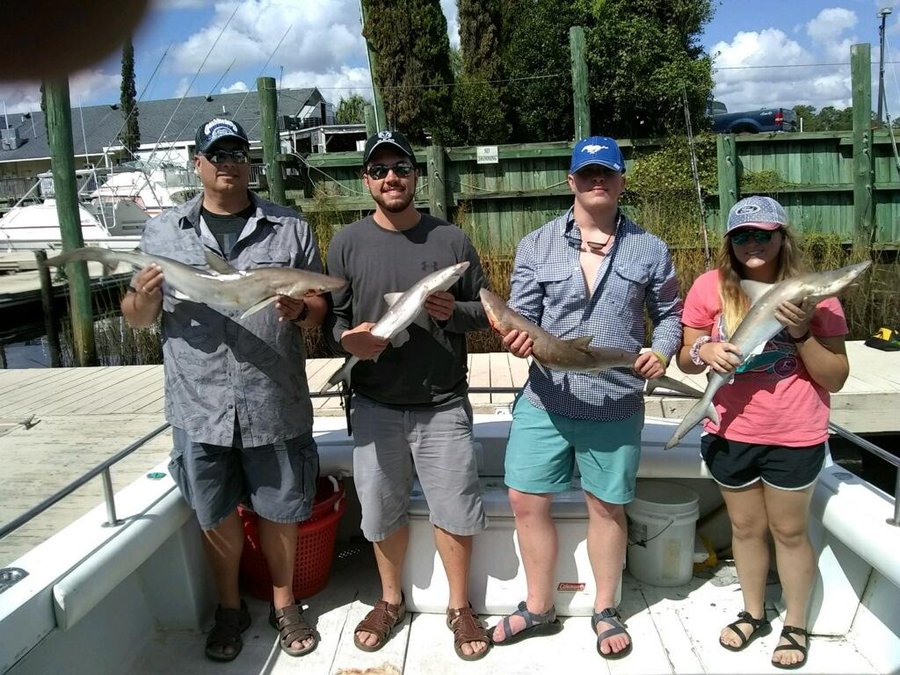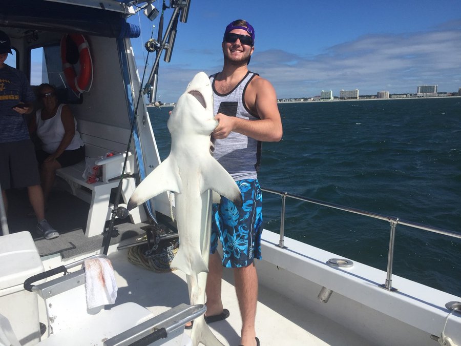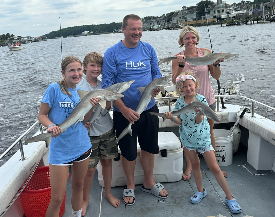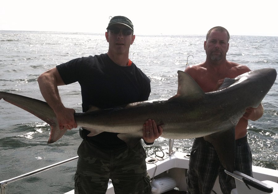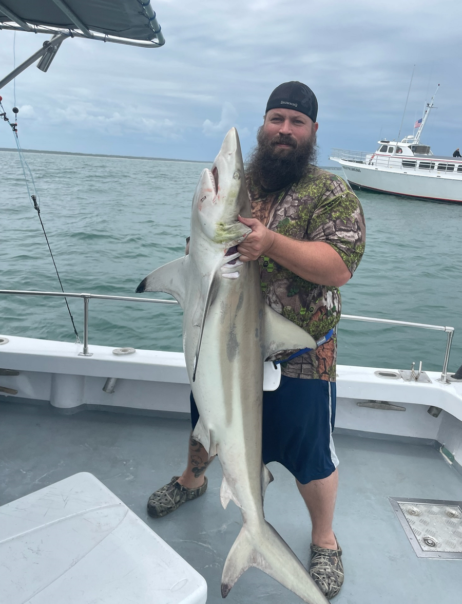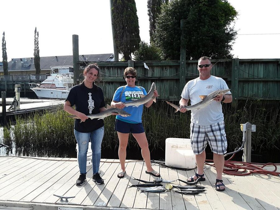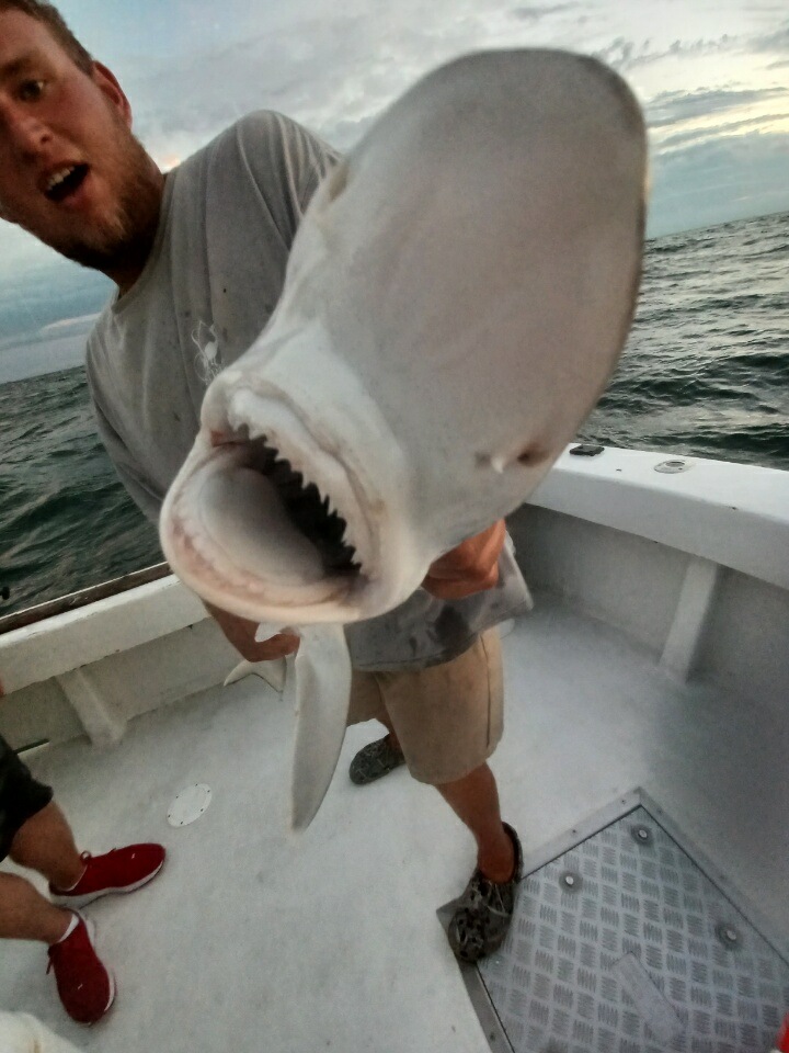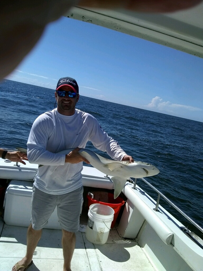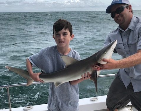 Sharks are showing up thick now with good catches on fish hook 2 with Capt Brandon
