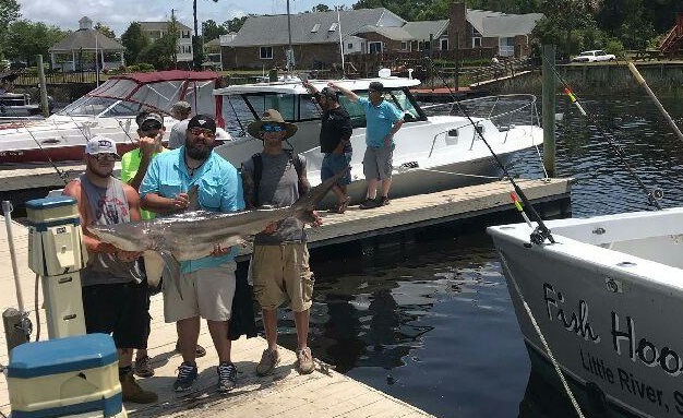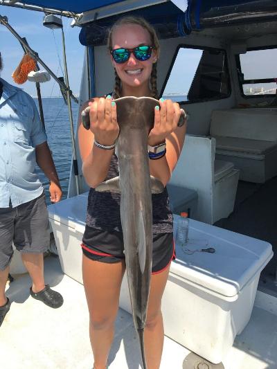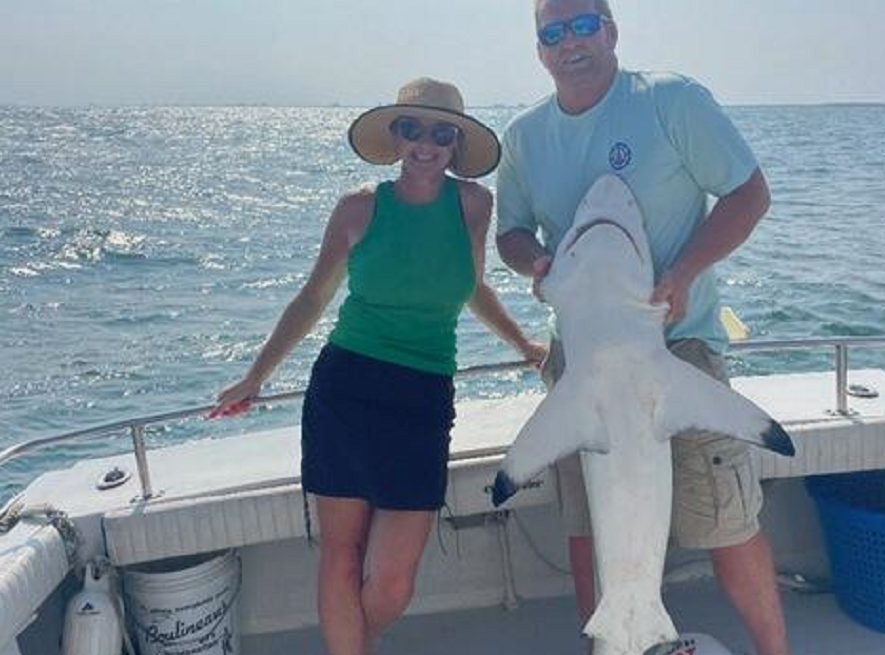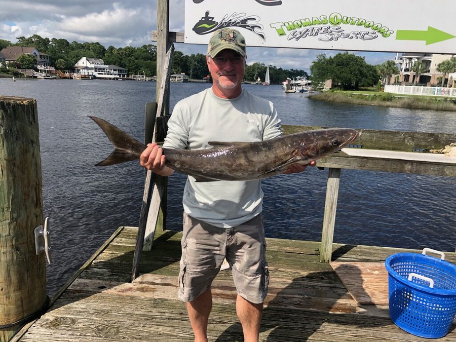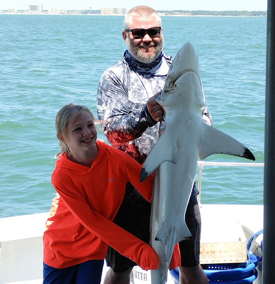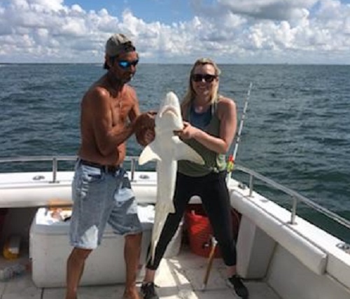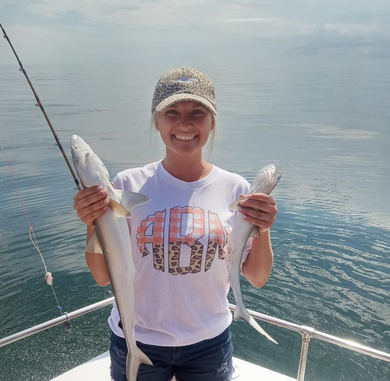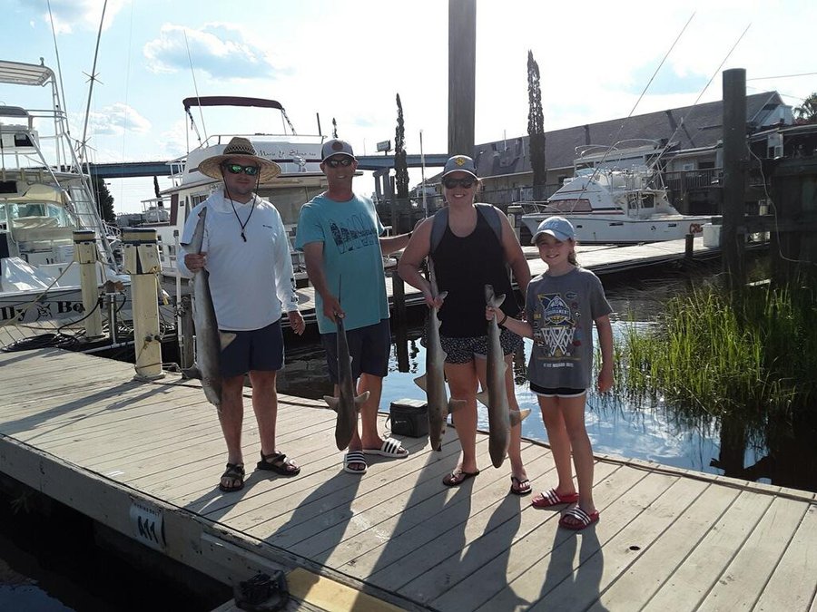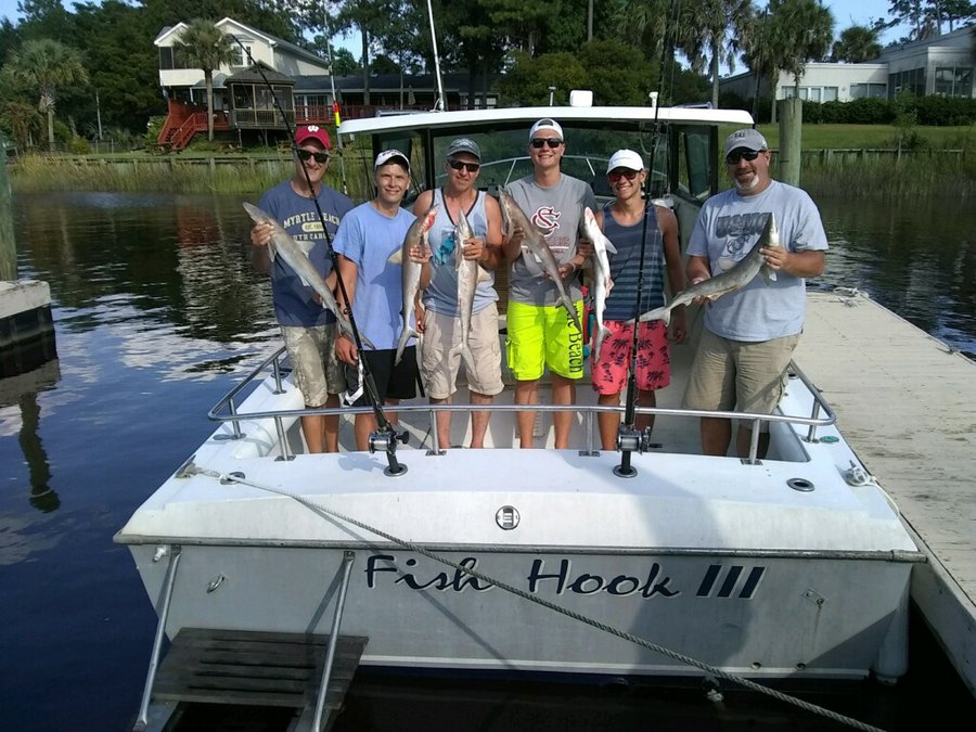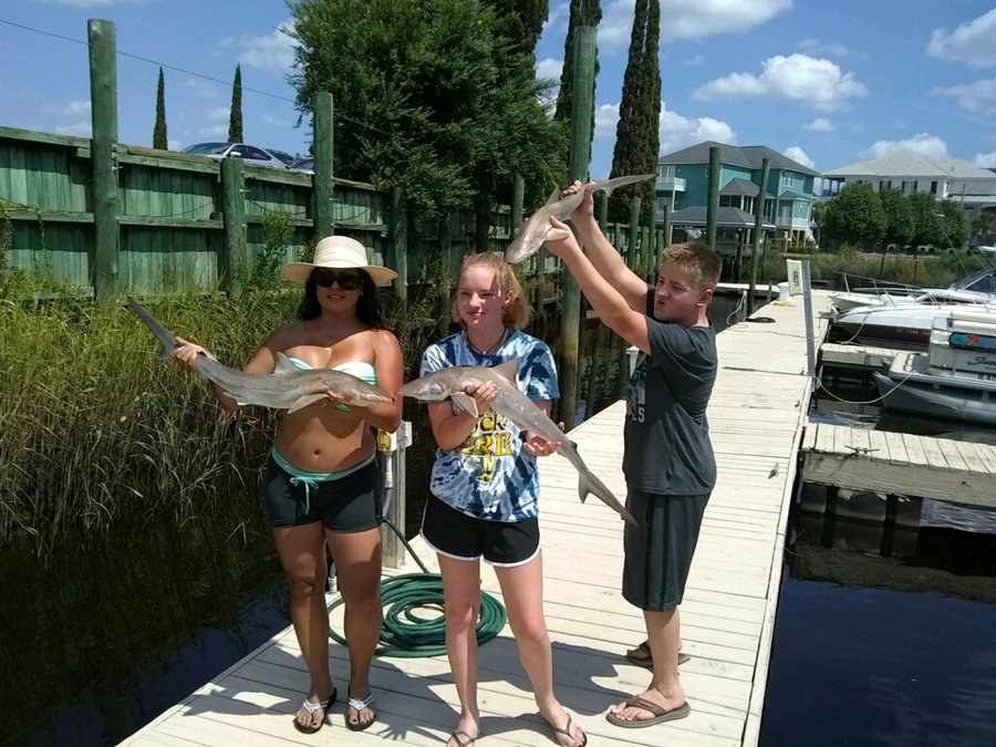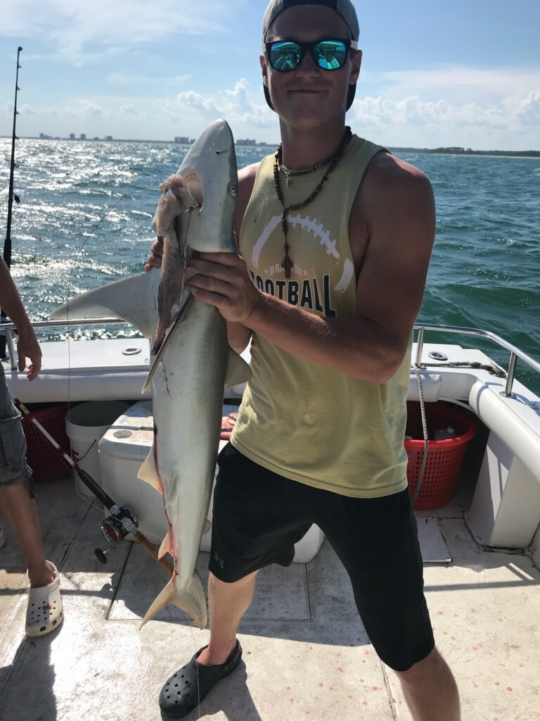Sharks are showing up thick now with good catches on fish hook 2 with Capt Brandon
