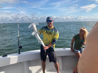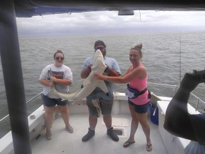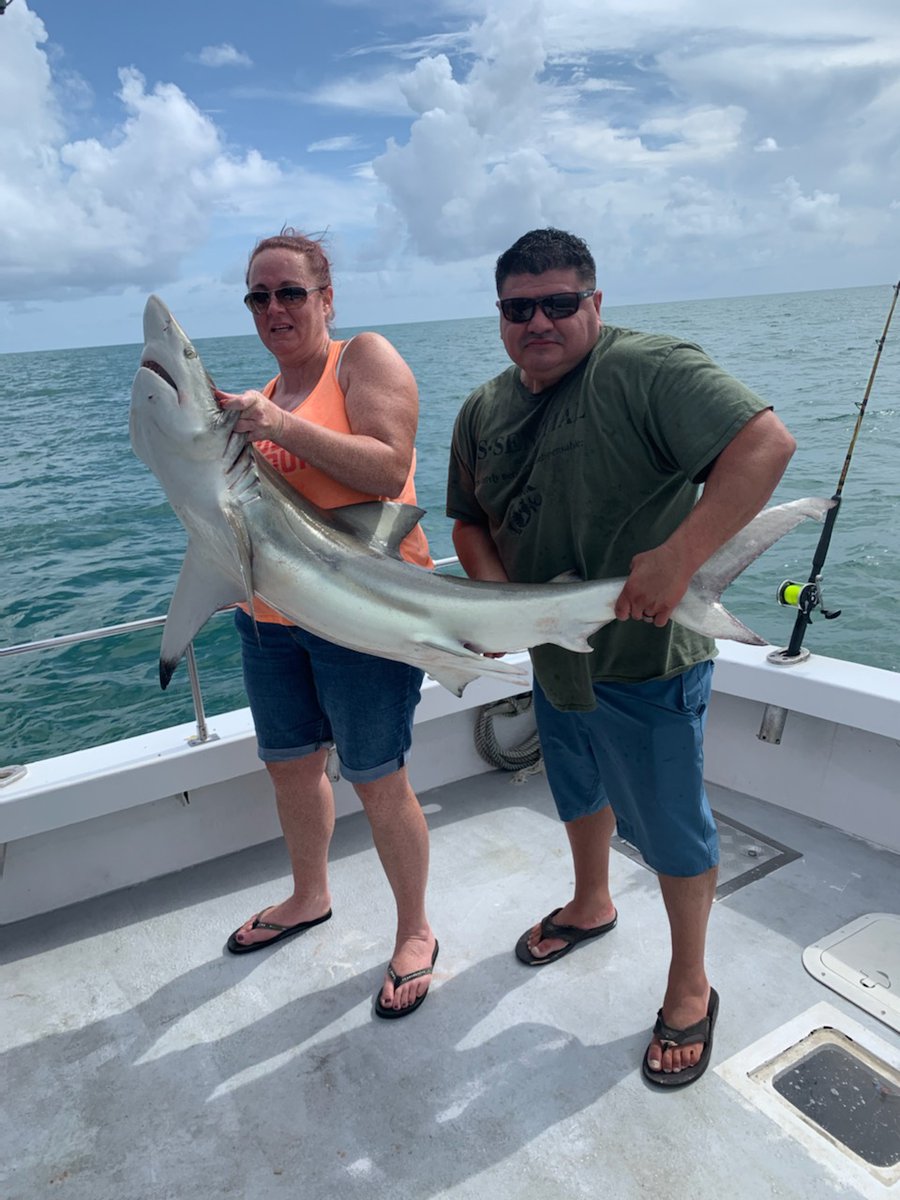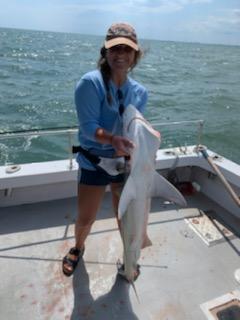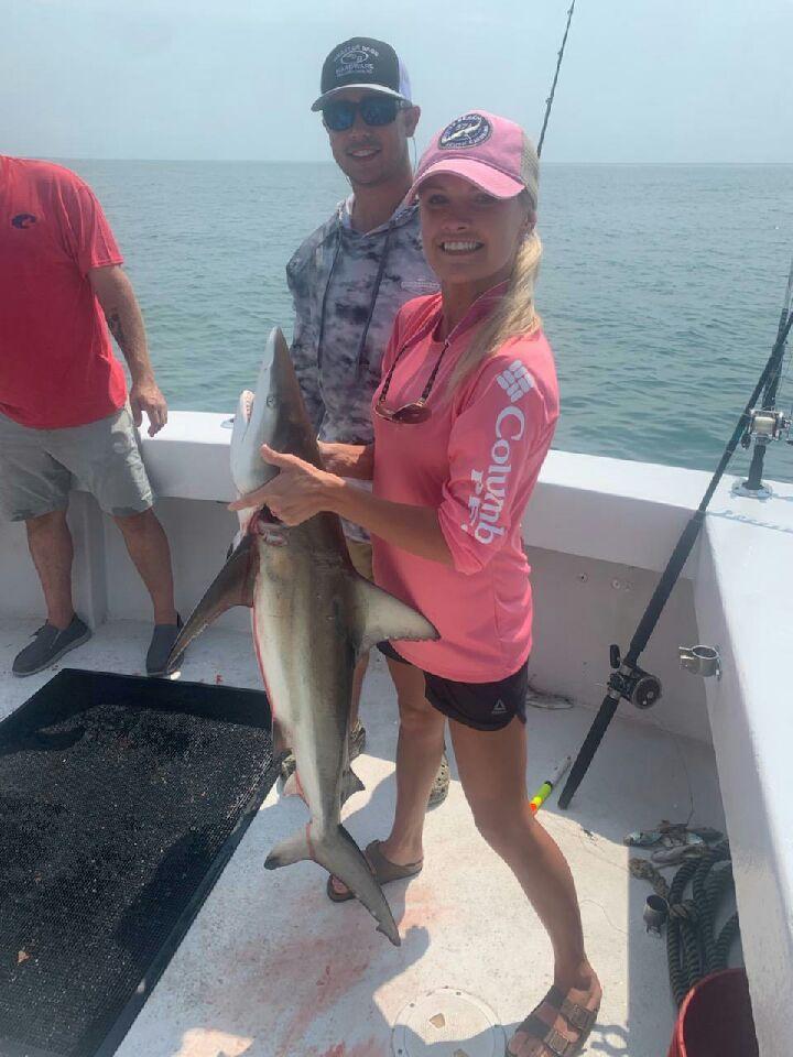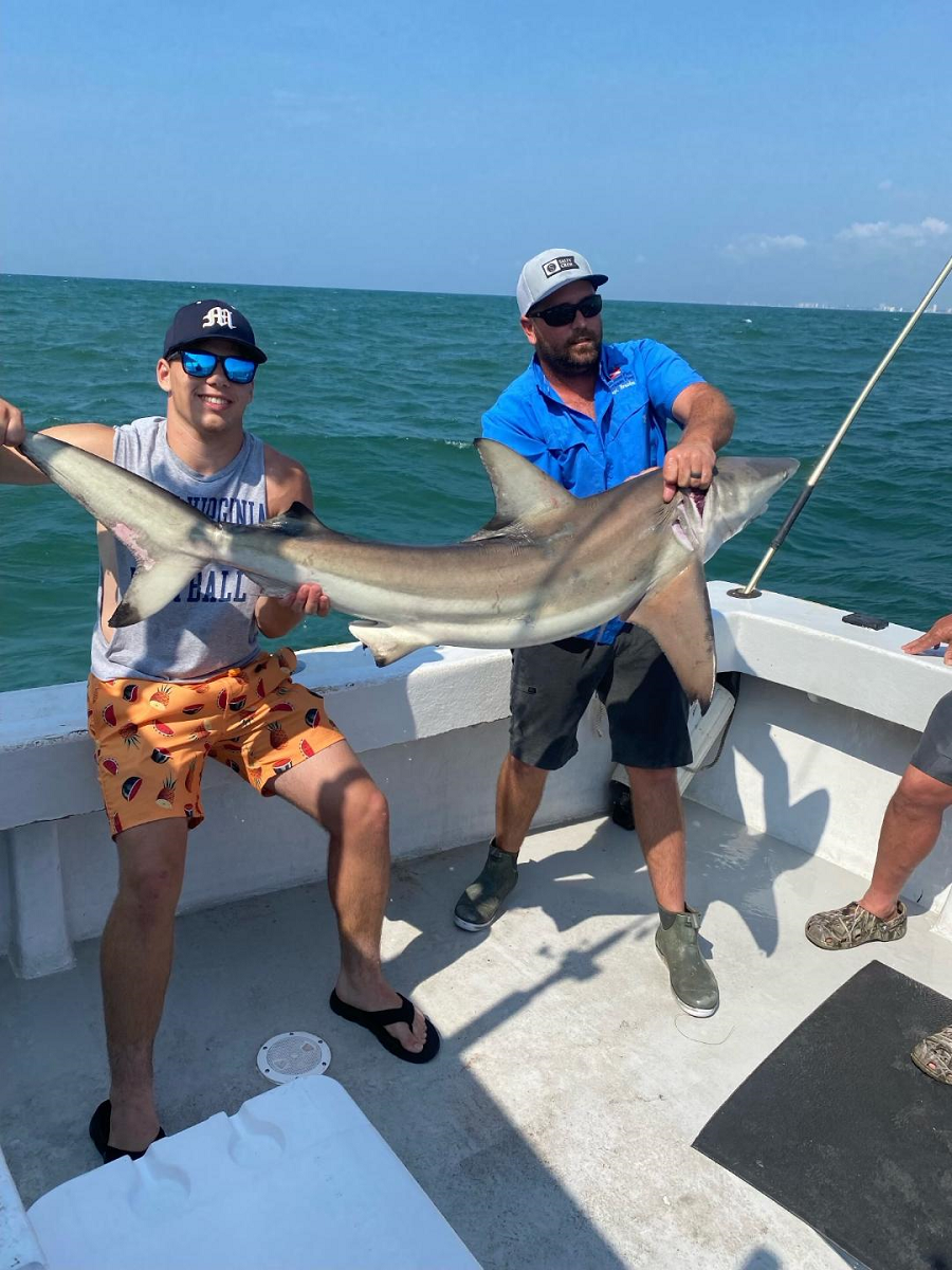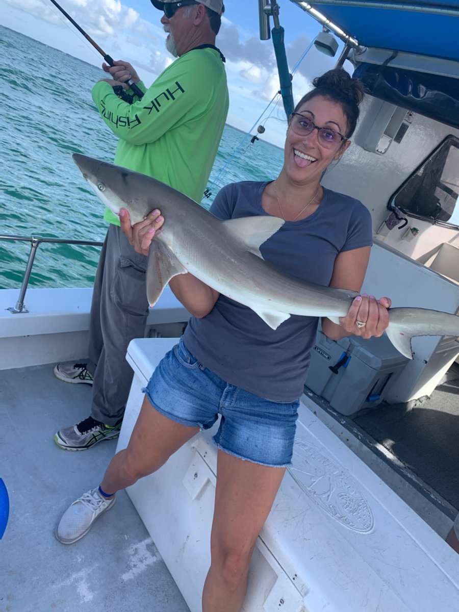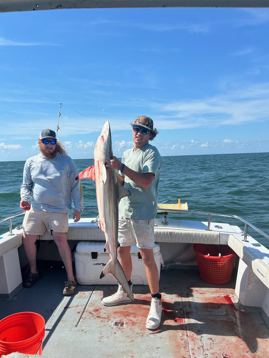 Been a great week with fishing,weather and the fish.Capt Anson on the FishHook 2 landed first big Black Tip this year.
