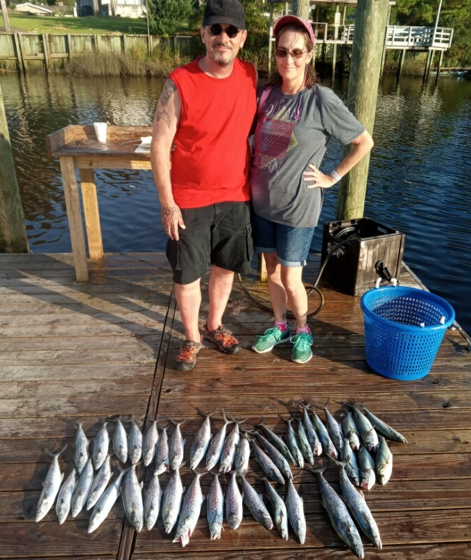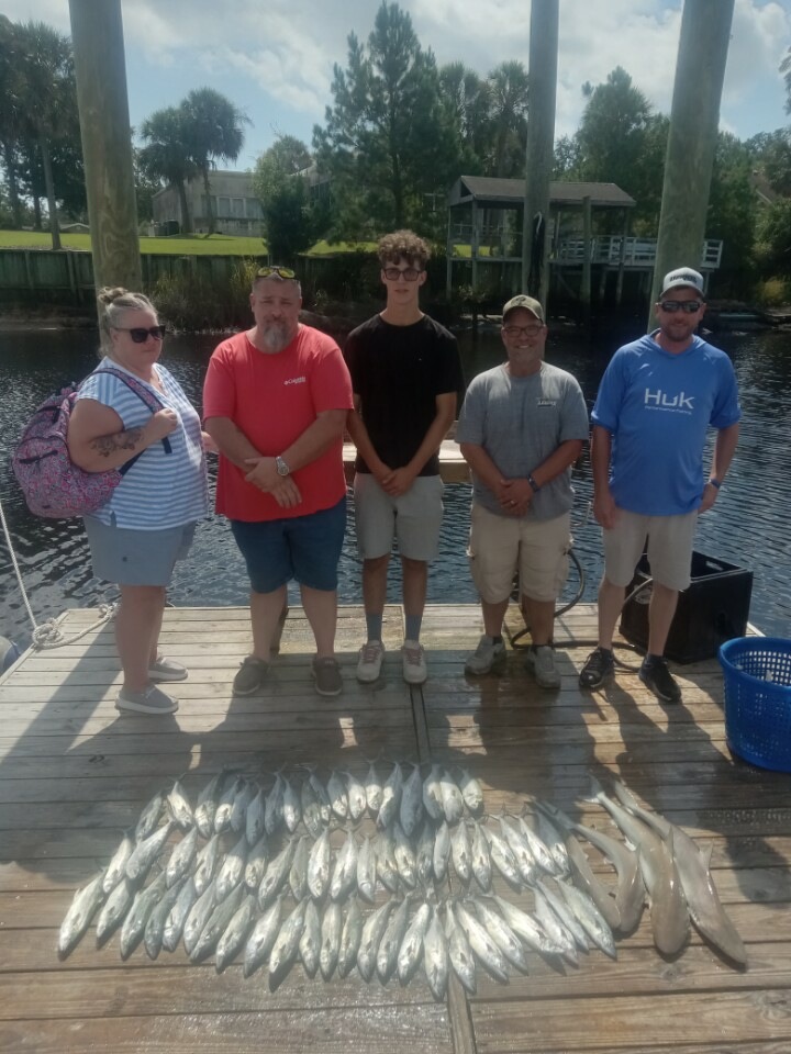 This week Spanish Mackerel have showed up good about 3 miles out on 1/2 day trips