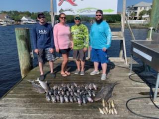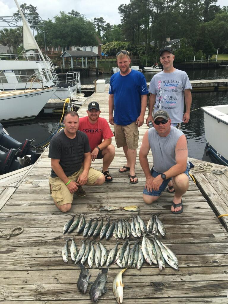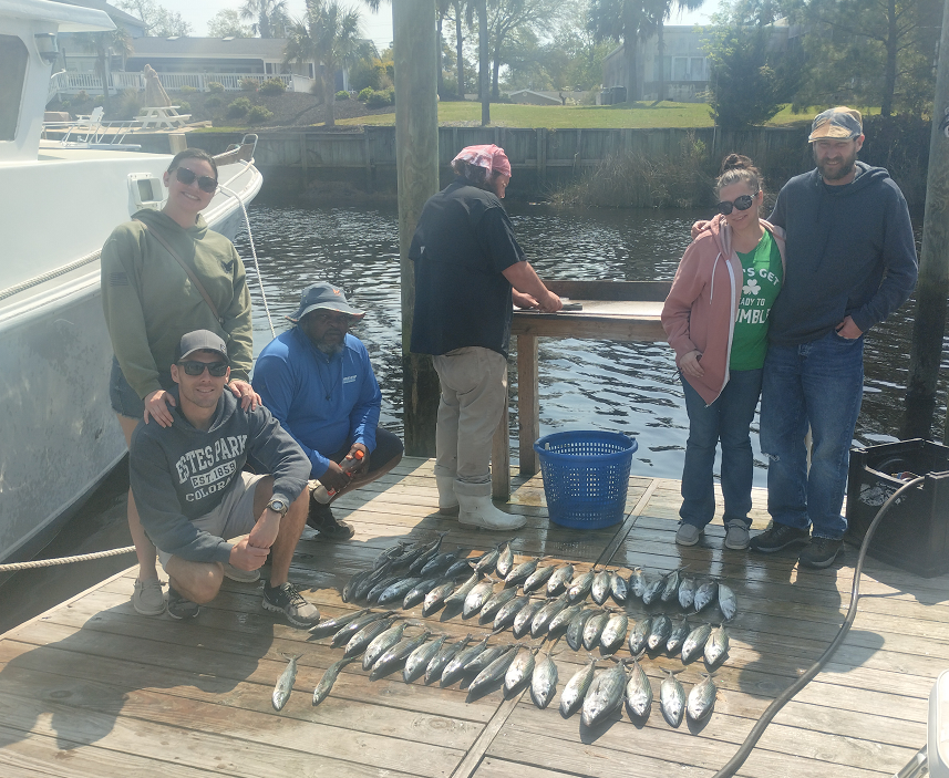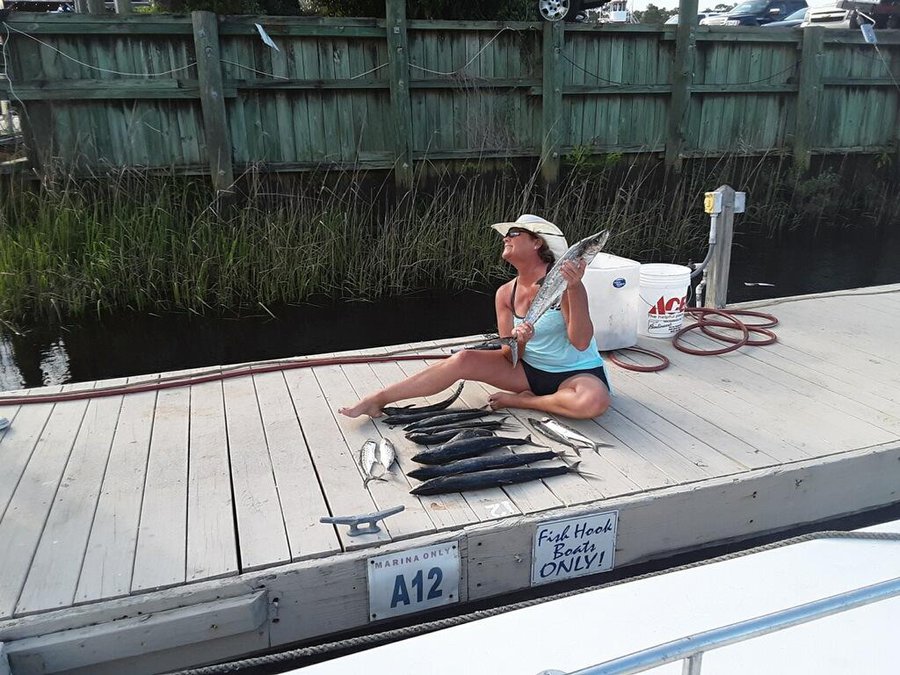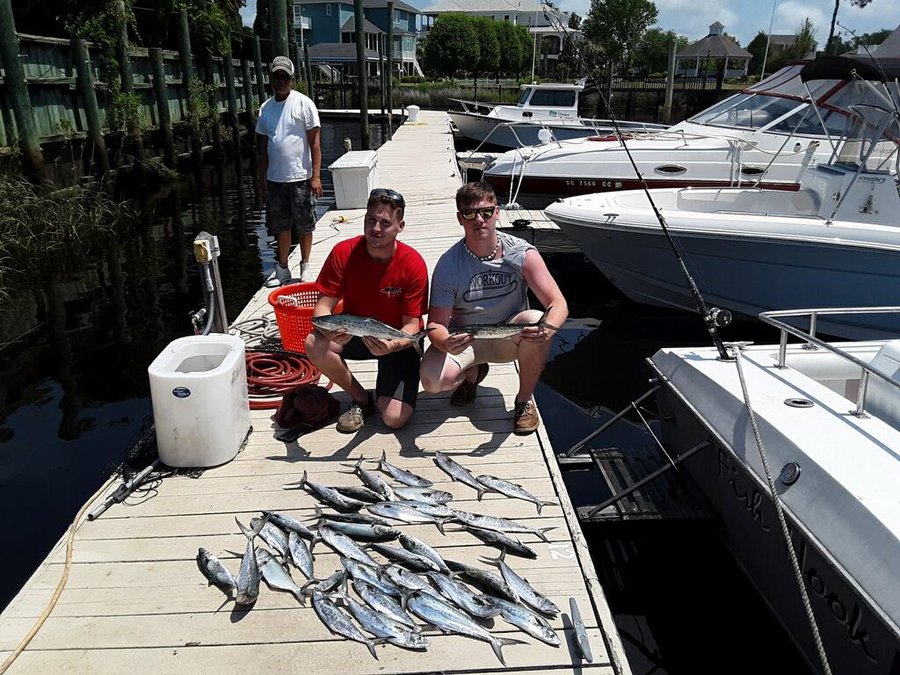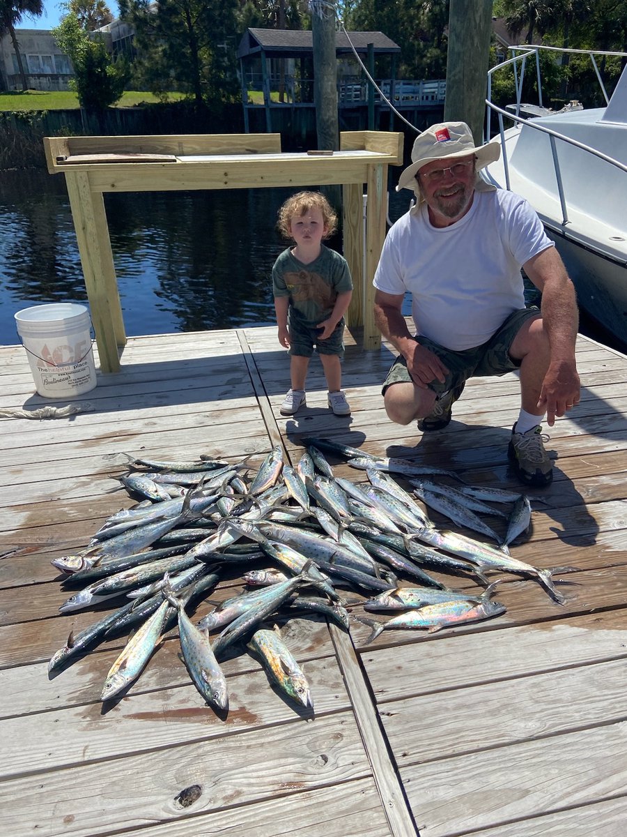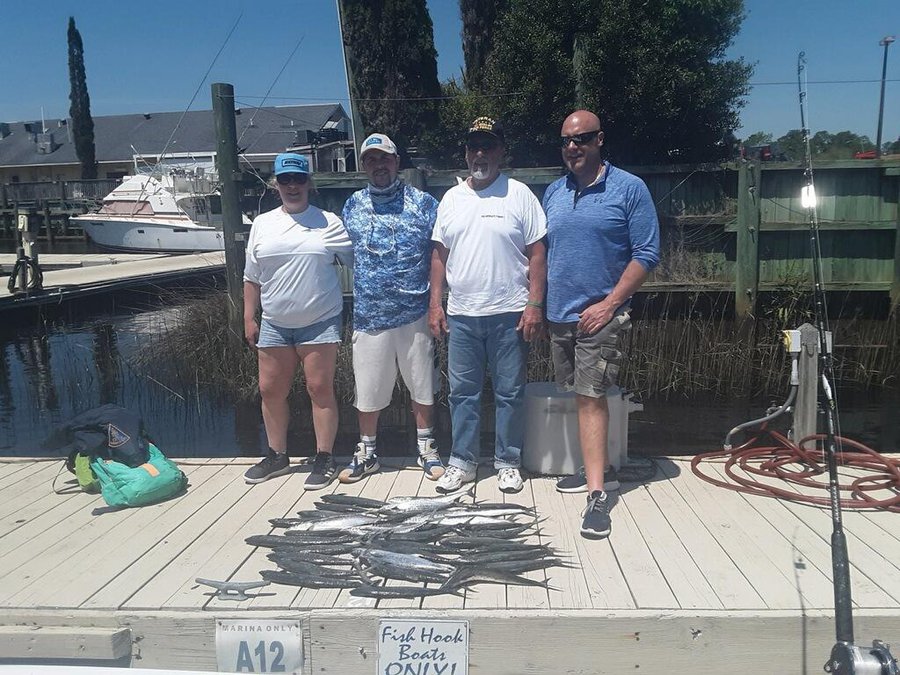 Fishing kicking off with a good year of good catches.On the Fish Hook 2 Capt Carson been racking up the Atlantic Bonitios and some large Spanish Mackerel showing up now. one the off shore side on 9 hr trips we had limits of Big Sea Bass out there.