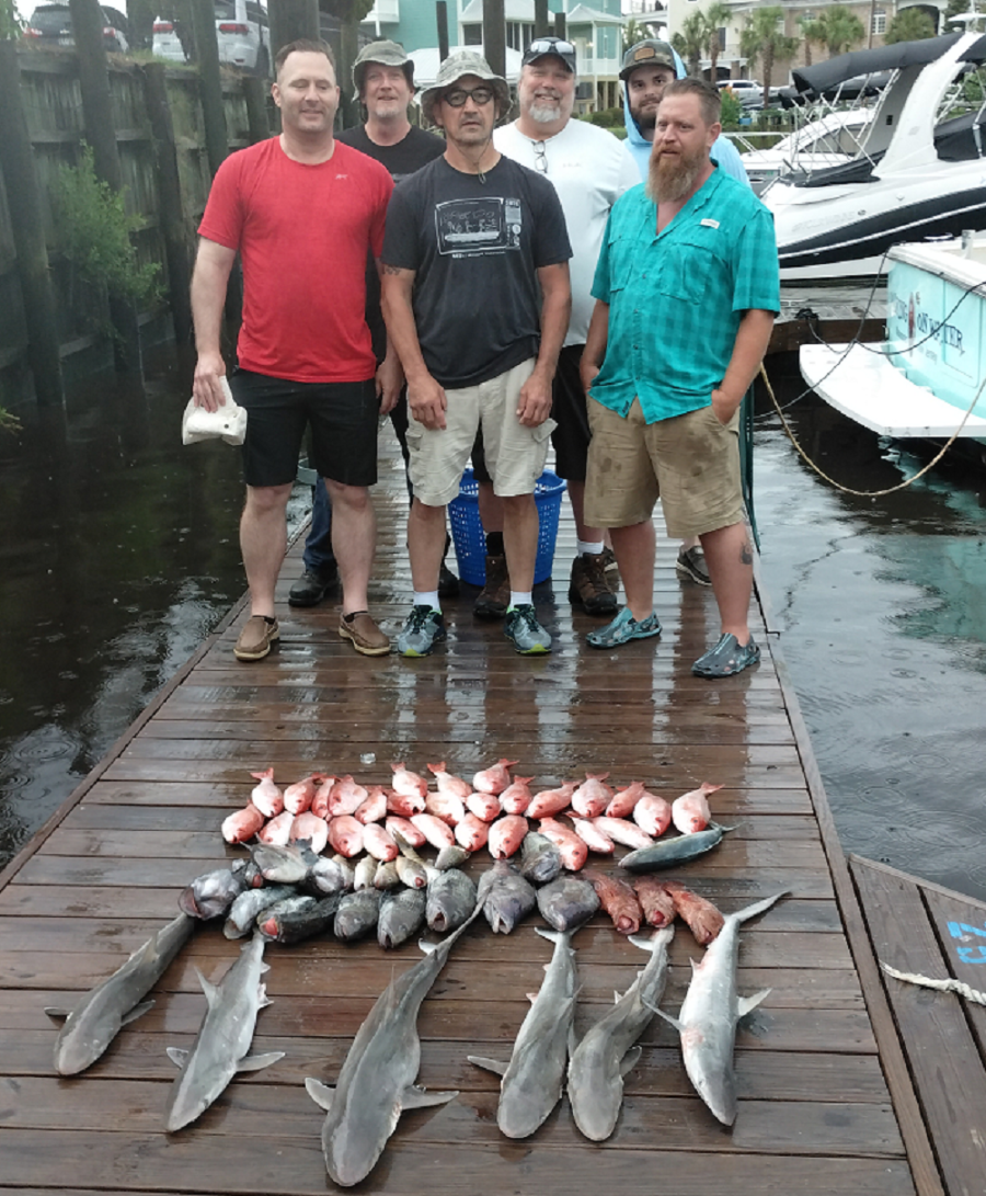 Rain stoped time to fish .Good catches of Spanish again and Sharks on our 1/2 day trips.Went to Gulf Stream today had a good catch of Grouper, Jacks, Vermillon Snapper. American Red Snapper open this weekend .