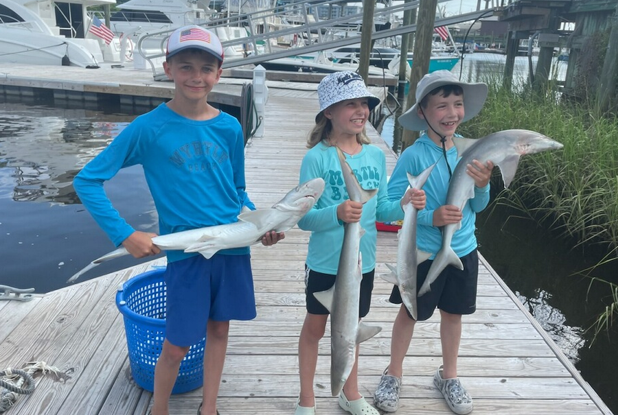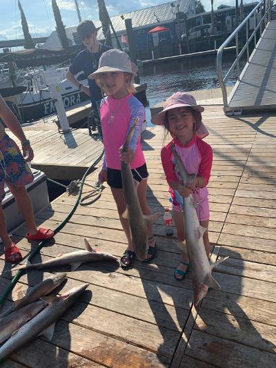 Ok Sharks are on the beach now on 1/2 day trips good catches for the kids.
