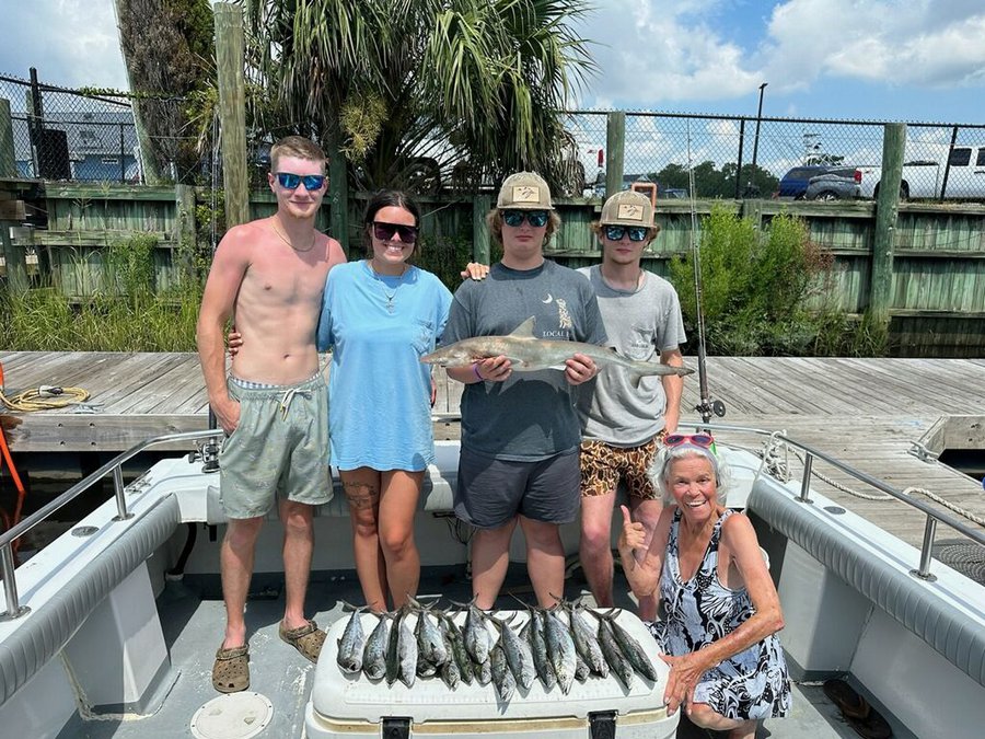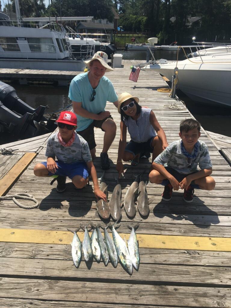 Capt Richard on the Fish Hook 3 with good catches of Spanish Mackerel and Atlantic Sharp Noise Sharks.