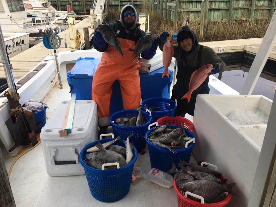 Have some Charters coming up over Christmas on 1/2 day trips .Keeper Sea Bass are caught this time off year and flounder on the rocks.