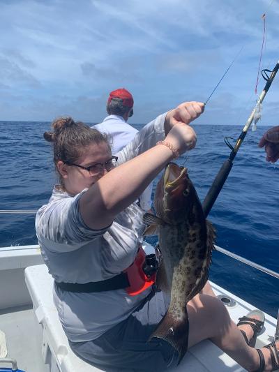 Mate Cross with Snowy Groupers caught last few week on Commercial trip.