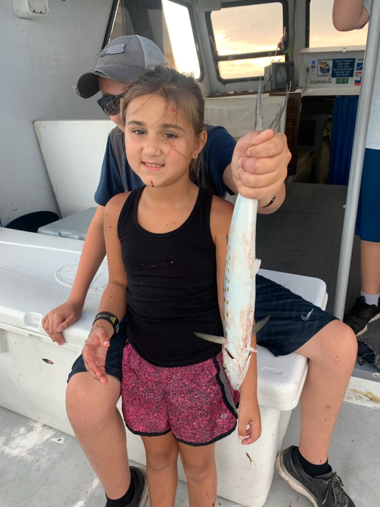 1/2 day trips Spanish Mackerel Sea Bass and Sharks Kids having a ball catching them.