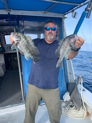 Last week done 9 hr trip and a 1/2 day trip .fishing good with Big Black sea Bass this time of year,and a Spiny Dog Shark showing up now. Book now for your 2024 season morning trips are booking up.