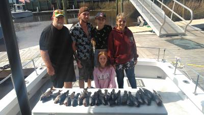 Weather been nice last few weeks water warming up and fish are biting good on 1/2 day charters. Group from Ohio with a catch of Spiny dog Sharks and Sea Bass on 1/2 day trip.